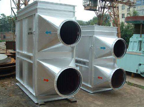 煙道換熱器使用的范圍在煙道內(nèi),大致由換熱管和換熱箱組成。包括由多根換熱管兩端分別插入上管板和下管板組成的管束,換熱管中為空氣流道,管束的多個換熱管間為煙氣流道,在管束的上部連接有空氣出/入集合箱,管束通過連接集合箱使空氣依次從多組管束的換熱管中流過。